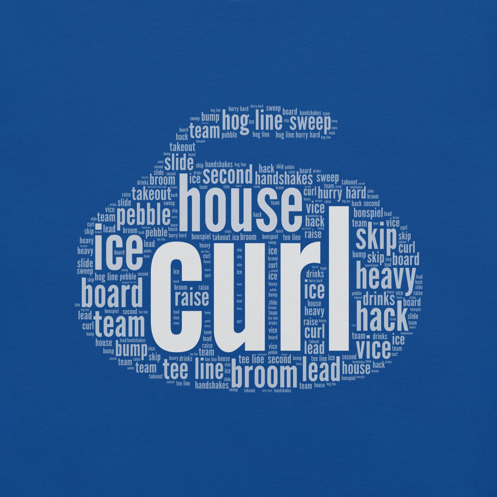 Show off your love for curling with this unique word cloud design in the shape of a curling rock. Lightweight, soft, and durable, it’s perfect for curling fans on or off the ice. Made just for you!